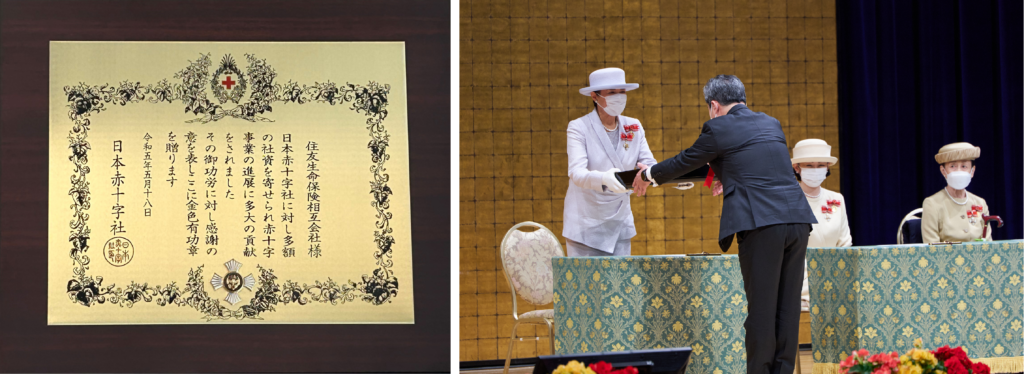 *2023年5月18日に開催された「令和5年全国赤十字大会」において、全国の有功章受章者代表として、名誉総裁皇后陛下より拝受しました。