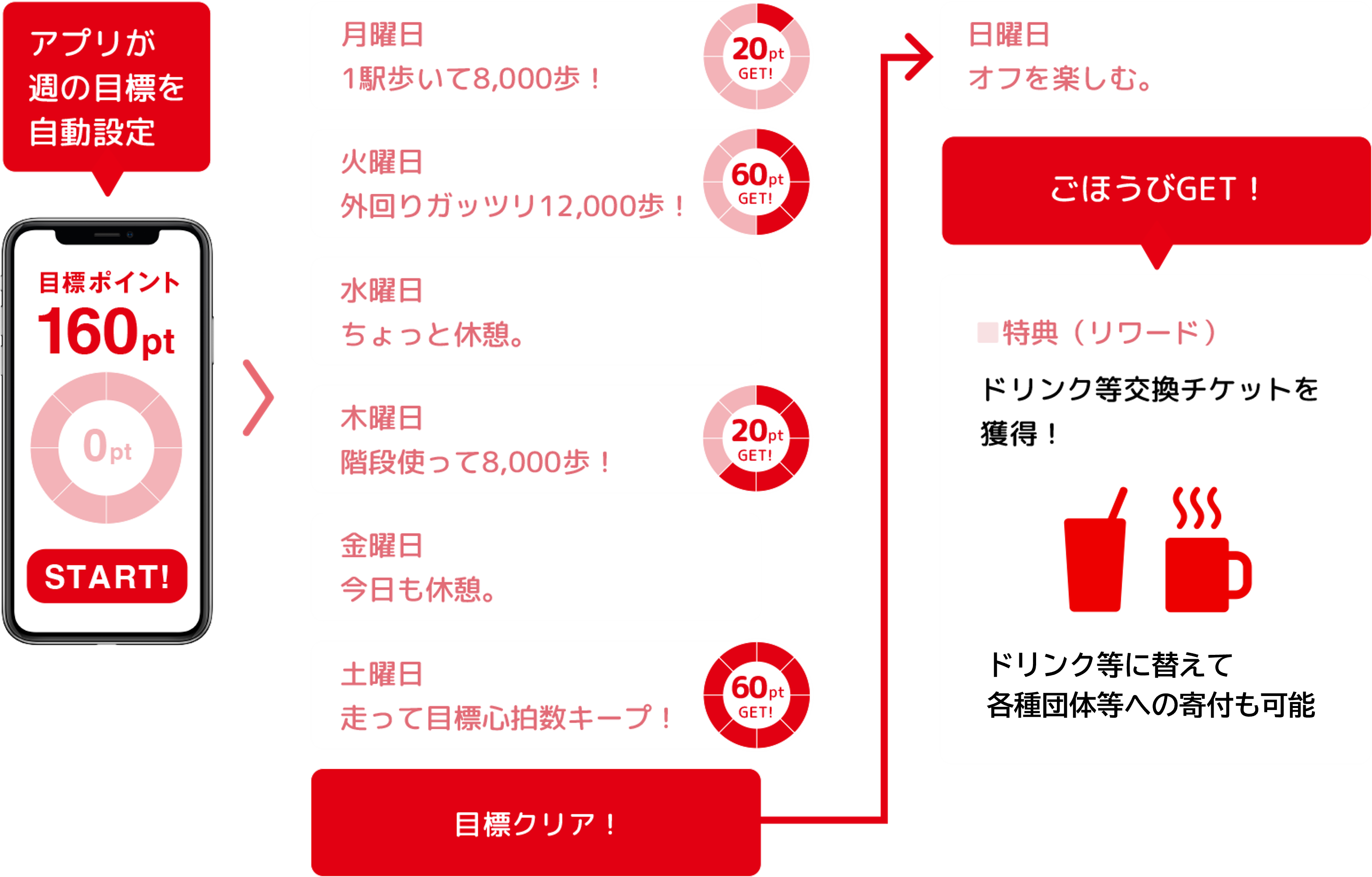 1週間のポイント目標を達成すると ごほうびが必ず獲得できる!