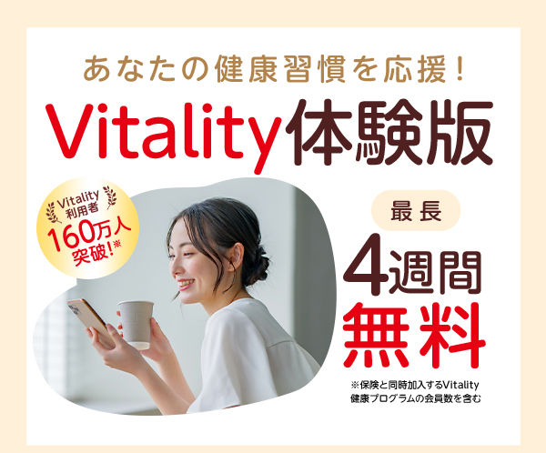 - ・Vitality健康プログラム(Vitality体験版)の内容(ポイント獲得の対象となる健康増進活動、健康増進活動を通じて付与されるポイント数、提供される特典(リワード)の内容等)は、2026年1月現在のものであり、将来変更することがあります。