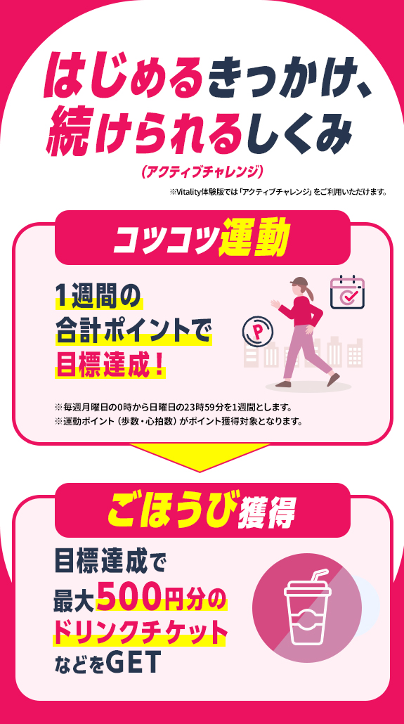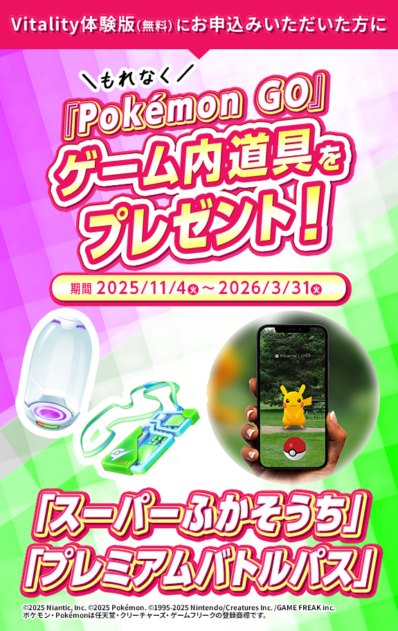 - ・Vitality体験版への申込完了をもって本キャンペーンの対象となります。