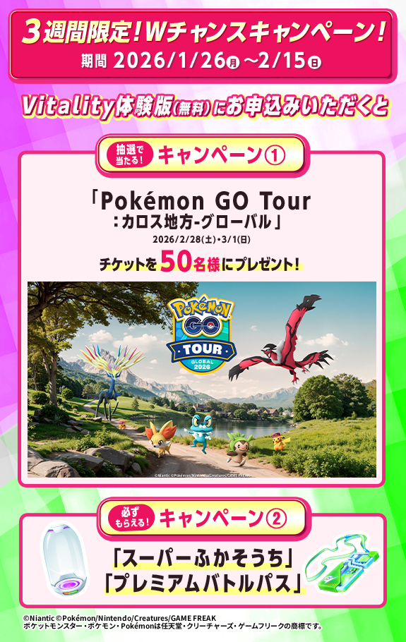 - ・ご当選されたお客さまには、2026/2/18(水)頃にVitality体験版に登録されているメールアドレスあてに、チケットをメール配信いたします。